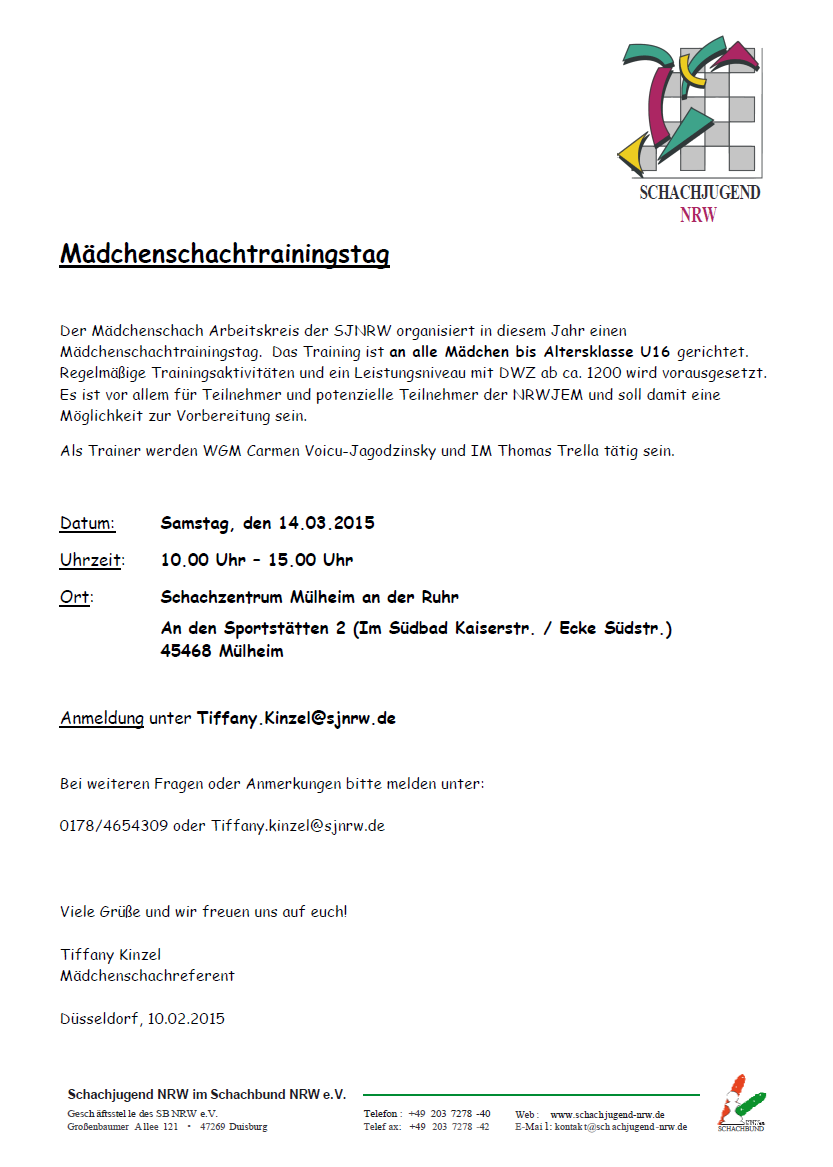 Die Ausschreibung fürs Girls Camp 2015 ist online! Bei diesem Schach-Spaß-Wochenende nur für...