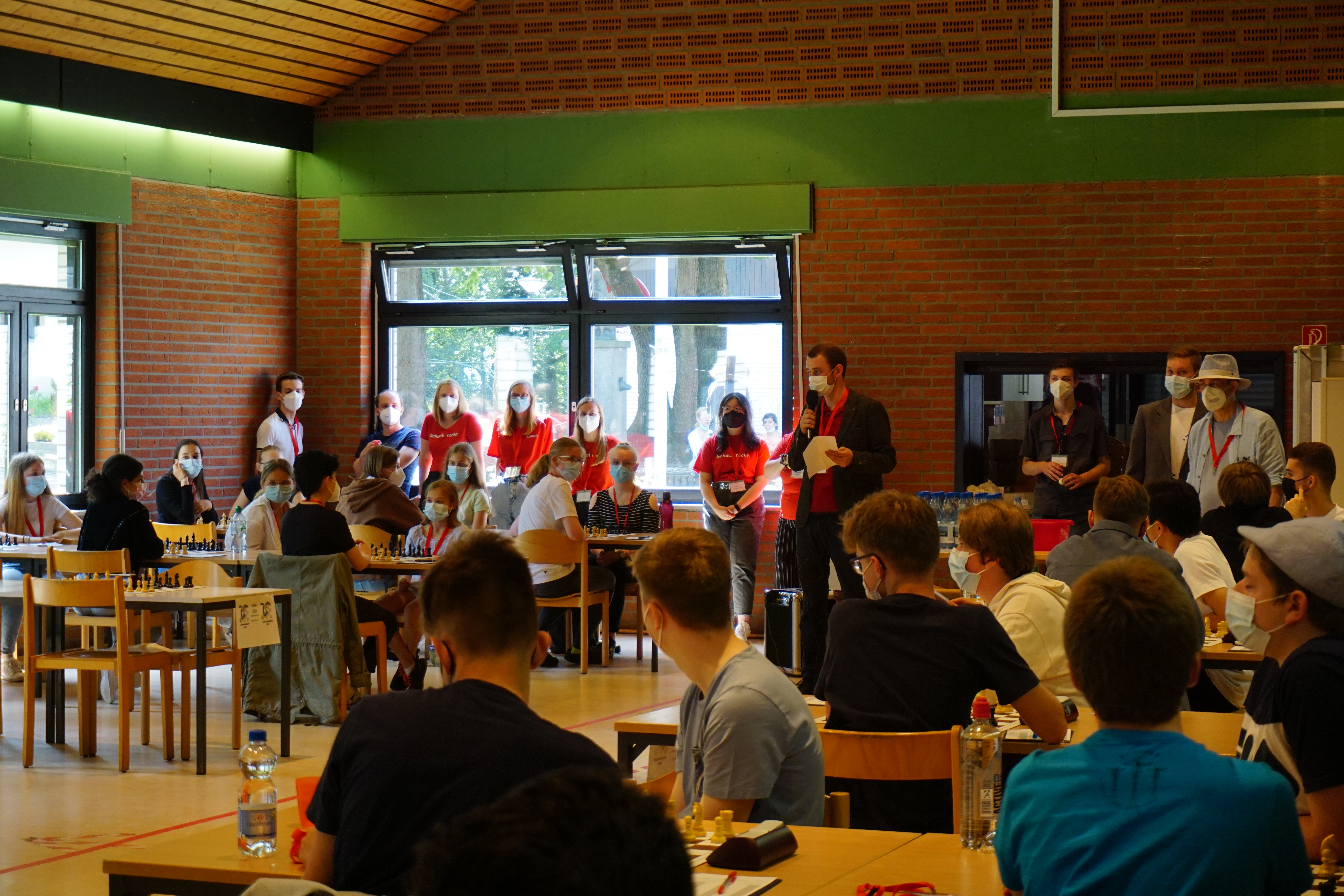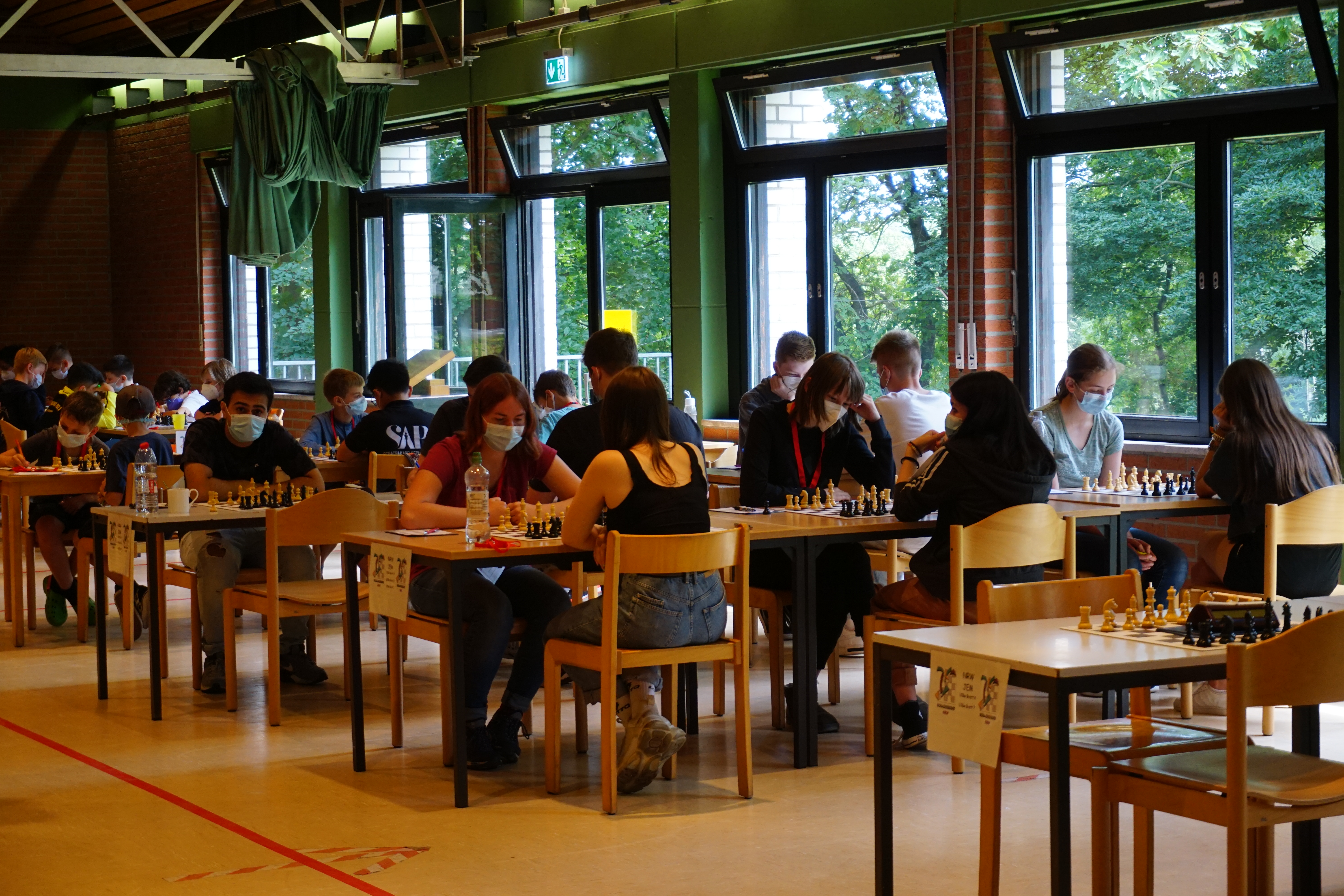 Trotz der vielen Regelungen und Hygienemaßnahmen ist die Anmeldung durch das sonnige Wetter sehr schön gewesen! Nach dem Mittagessen und der Begrüßung fing auch schon die erste Runde an und alle Kinder und Jugendlichen saßen konzentriert in den Turnierräumen.